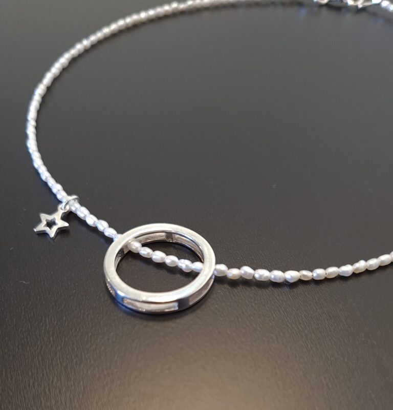 Colierul este realizat cu microperle, perle butoni de 3-3,5mm, inchizatoare din argint 14mm si accesorii din argint, crucea de argint are montate perle de cultura baroc si are dimensiunea de 5×4 cm.