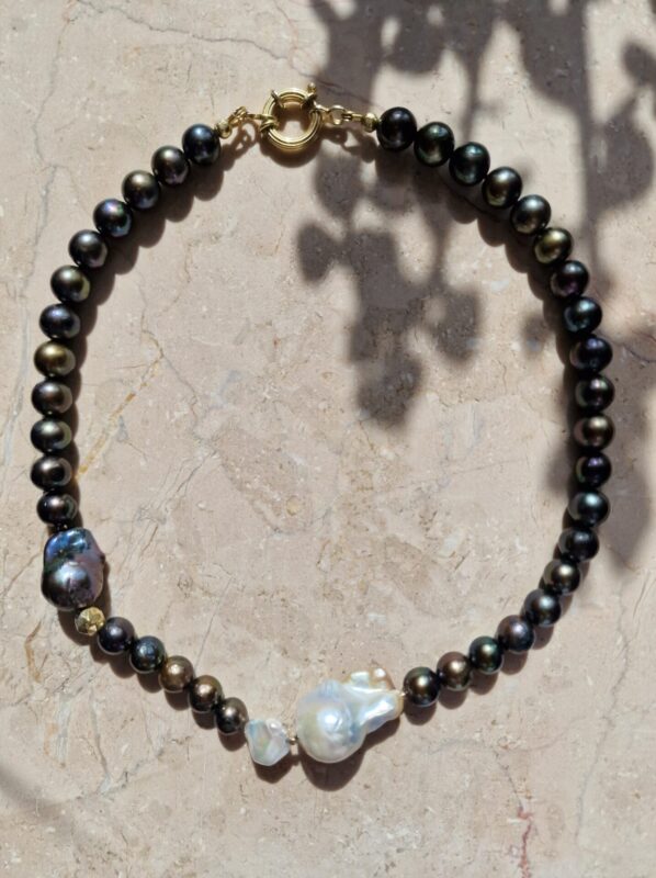Colierul este realizat cu perle de cultura cu forma neregulata 3-3,5mm, charm din argint in forma de inima 7mm si accesorii din argint.